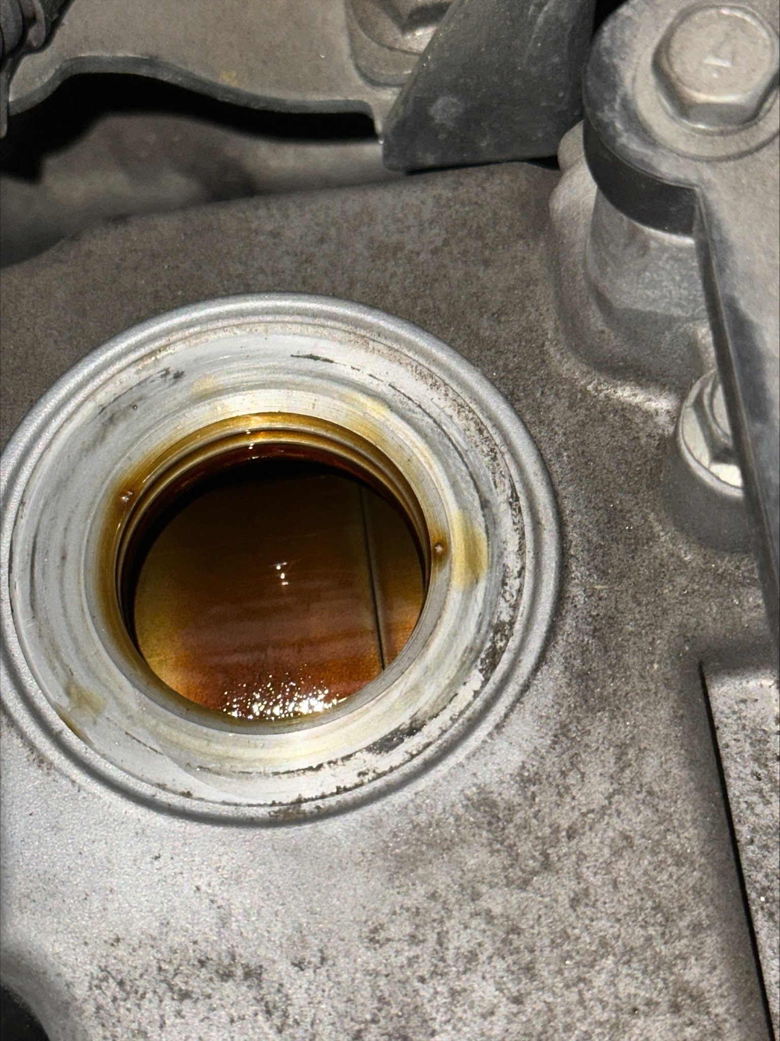新油を入れてからですと少しわかりにくいので入れる前に撮影しましたがそこまで圧のかからないフィラーキャップ周辺でこの変化なのです。かなり効果は期待できるかと!!